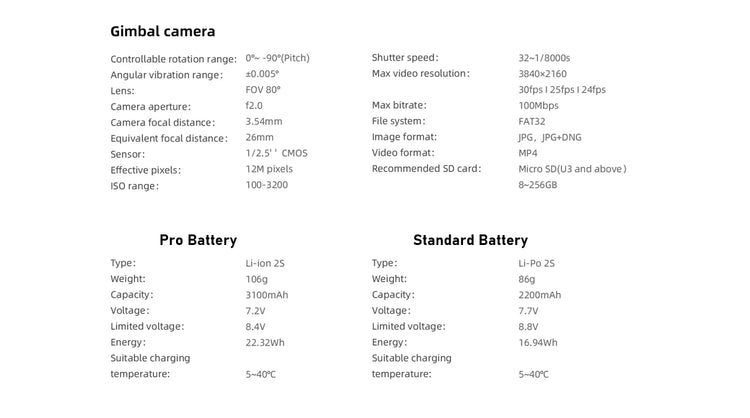 - Camera: 4K UHD camera (3840 x 2160) for high-resolution video and image capture